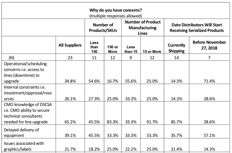 The HDA survey noted that “the top stated concerns that impact manufacturers’ ability to serialize product include CMO knowledge and delayed delivery of equipment.”