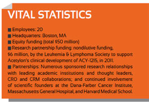 , genetic, and parasitic infectious diseases. The company licensed its core technology from Harvard University and the Dana-Farber Cancer Institute. It completed lead optimization and preclinical development of its lead pipeline candidate, ACY-1215, in late 2010, and following successful completion of Phase 1a, it is now in two Phase 1b clinical trials, in combination with Revlimid (Celgene) and Velcade (Takeda/Millennium), for the treatment of multiple myeloma.
