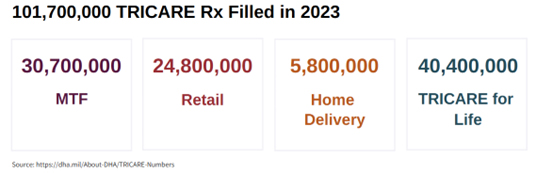 Today, MHS is a growing, vast and complex organization, with a budget of over $60 billion, serving approximately 9.6 million beneficiaries. There are more than 700 military treatment facilities including 45 hospitals globally (~80% in the U.S.), more than 300 military pharmacies, and the Defense Health Agency (DHA) employs more than 130,000 military and civilian healthcare providers, making it one of the nation’s largest health system employers. In fiscal year 2023, TRICARE spent over $8 billion on prescription drugs for about 6.6 million (70%) of its beneficiaries.