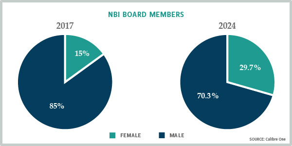 Figure 1: NBI Board Member Gender Diversity 2017 and 2024