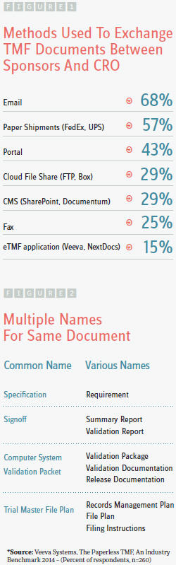 Widespread industry research highlights how document-centric processes directly impact major benchmarks, such as study start-up and close-out. Paper-intensive processes, such as contract negotiations and ethics committee approvals, are top causes of study delay, suggests data from a 2011 global CenterWatch study. Furthermore, a collaborative study on trial start-up conducted by the Tufts Center for the Study of Drug Development reveals that, on average, a Phase 2/3 study takes 16.7 months from protocol approval to 100 percent approved sites initiated. Within this time frame, high volumes of paperwork tied to pre-study visits, site selection, contract negotiations, site initiation, and first-patient visits are generated. And, according to Veeva Systems’ 2014 survey of TMF owners (n = 260), 63 percent of respondents say paperless study and site start-up processes would significantly shorten clinical development times.