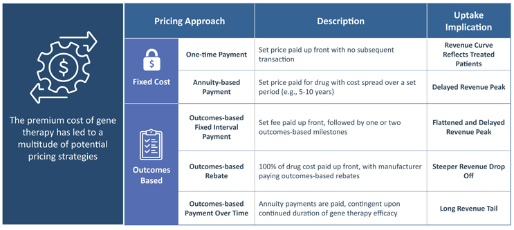 For fixed cost approaches, which include one-time or annuity-based payments, there is the potential for strong payer pushback due to gene therapies’ high cost.