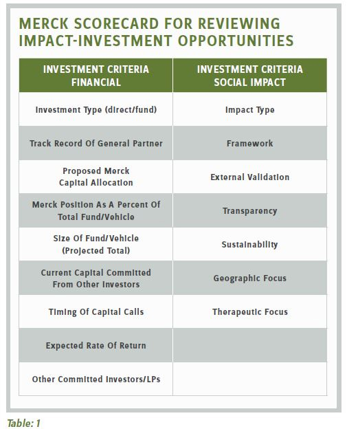 IMPACT INVESTING AS A COMPONENT OF MERCK’S CORPORATE RESPONSIBILITY
