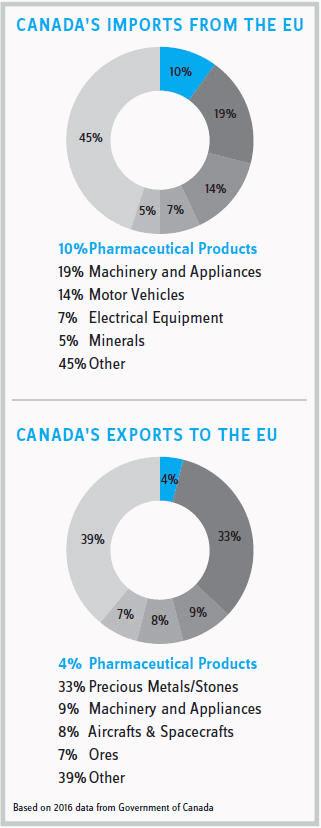 MNCs should consider taking advantage of the enhanced IP protection in Canada by boosting investment in manufacturing and research & development activities. Canada’s attractiveness for pharmaceutical manufacturers is further highlighted by having the lowest business costs across the G7 countries for biomedical research and development. A significant opportunity for growth exists, considering that Europe is currently Canada’s second-largest export market for pharmaceutical products ($1.04 billion in 2016). Since many of the changes brought about by CETA are regulatory changes made to federal laws, life sciences companies outside of Europe also will benefit indirectly from CETA. For example, patent-term restoration provisions will be applicable to all pharmaceutical manufacturers regardless of their geographic locale.